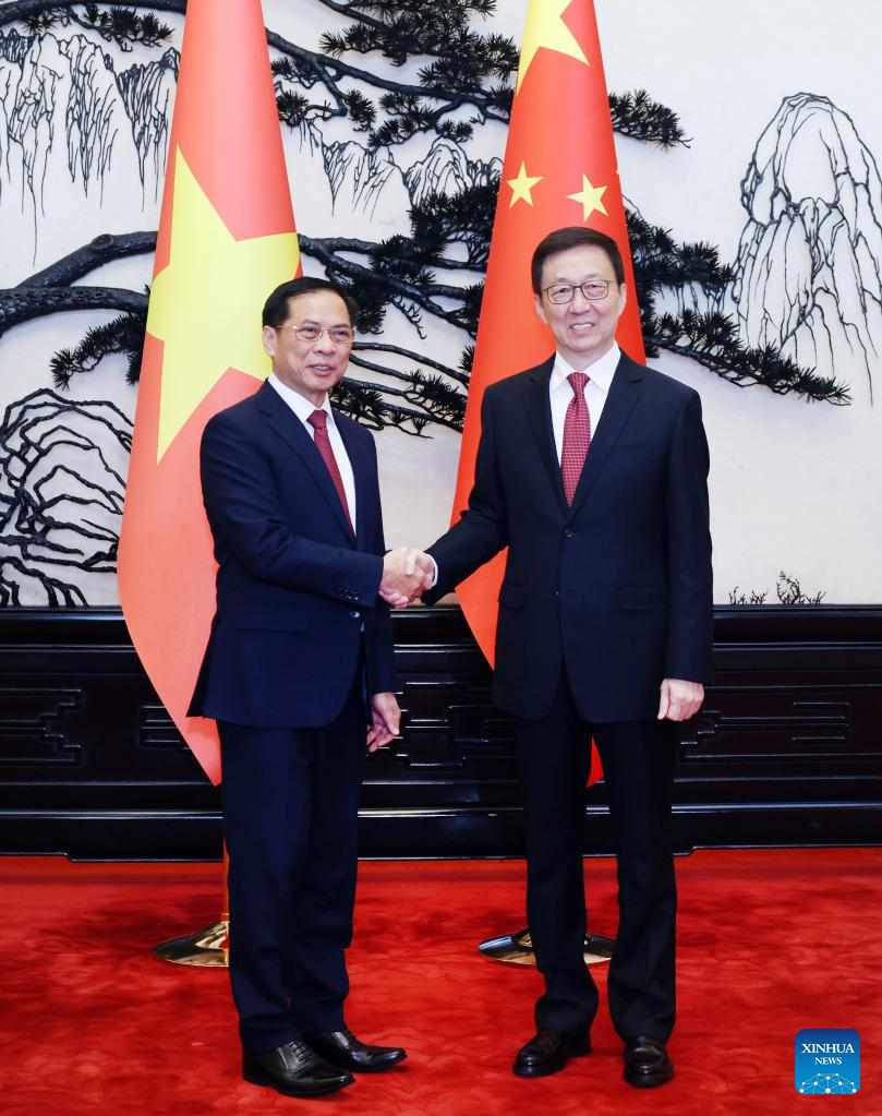 BEIJING, Dec. 10 (Xinhua) -- Chinese Vice President Han Zheng met with Deputy Prime Minister and Foreign Minister of Vietnam Bui Thanh Son in Beijing on Tuesday.