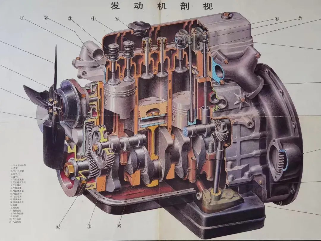 The student could hardly believe that the diagram, which so vividly and precisely depicts every detail of each engine part—astonishingly resembling a real engine—is actually a painting.