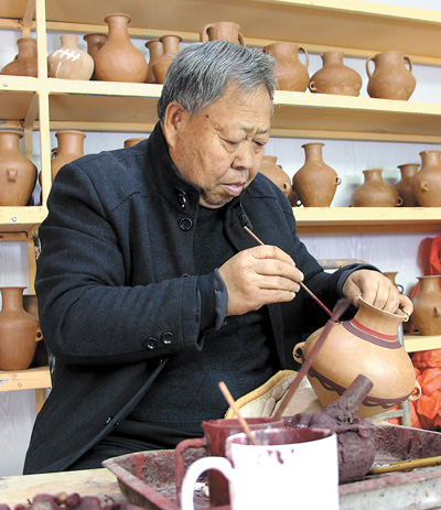 Inheritor dedicated to passing on colored pottery craft in NW China's Gansu
