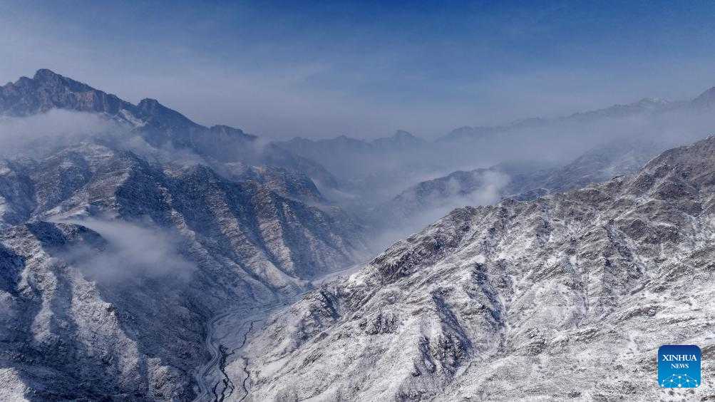 An aerial drone photo taken on Dec. 11, 2024 shows the scenery of Helan Mountain after snow in northwest China's Ningxia Hui Autonomous Region. (Xinhua/Wang Peng)