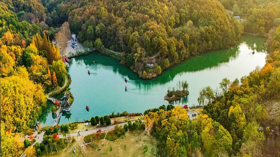Layers of autumn colors surround Pearl Lake in the Nanshan Scenic Spot, Zhenjiang city, east China's Jiangsu Province. (Photo/Chen Jiang)