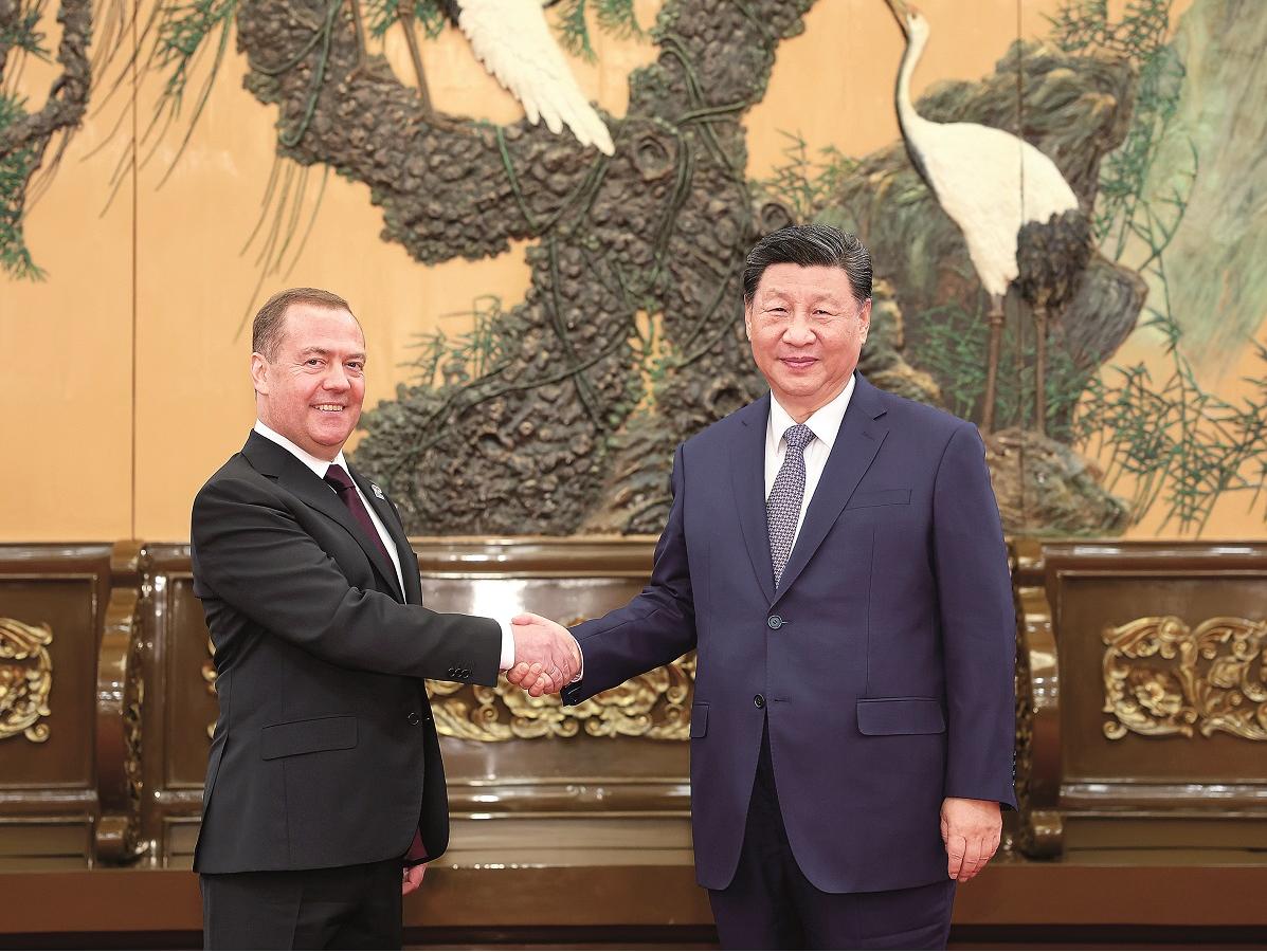 Xi, who is also general secretary of the Communist Party of China Central Committee, made the remarks during a meeting with Dmitry Medvedev, chairman of the United Russia party, who was on a working visit to China at the invitation of the CPC.