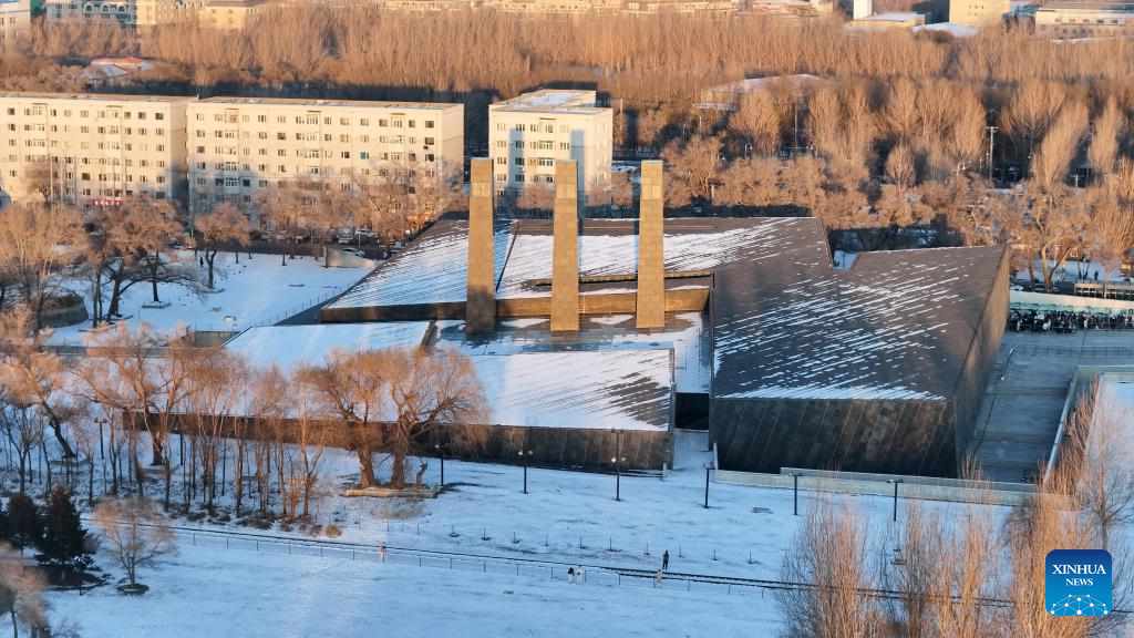 An aerial drone photo taken on Dec. 12, 2024 shows the Exhibition Hall of Evidences of Crime Committed by Unit 731 of the Japanese Imperial Army in Harbin, northeast China's Heilongjiang Province. The former site of the notorious Japanese germ warfare army, known as Unit 731, reopened to public on Friday with a special exhibition on cultural relics and historical materials of Japan's germ-warfare crimes in China.