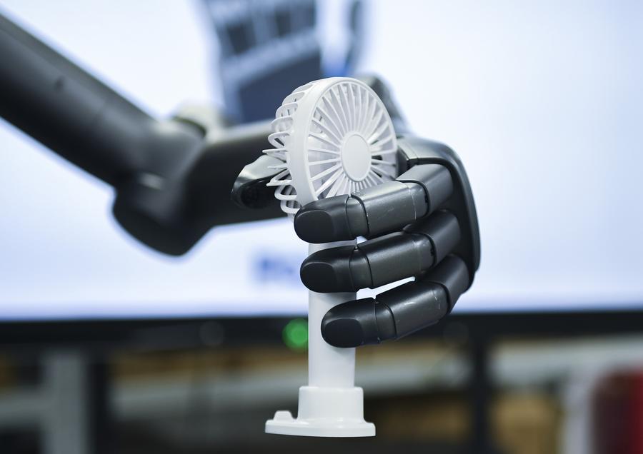 A TORA-ONE humanoid robot demonstrates its gripping ability at a sci-tech company in Shenzhen, south China's Guangdong Province, June 28, 2024. (Xinhua/Mao Siqian)