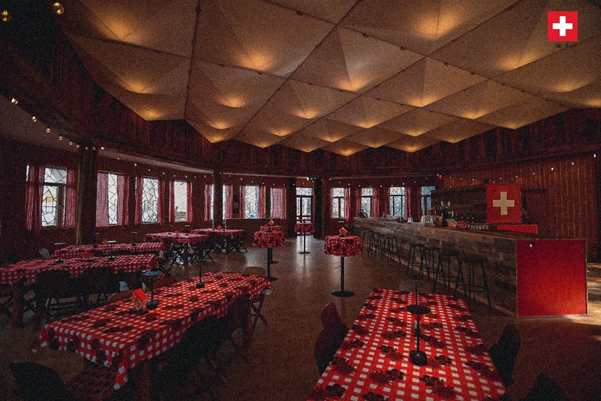 The interior of the Swiss Chalet features three main colors: Swiss red, forest brown, and snow white, creating an ambiance that blends nature and modernity. (Photo courtesy of the Swiss Embassy)
