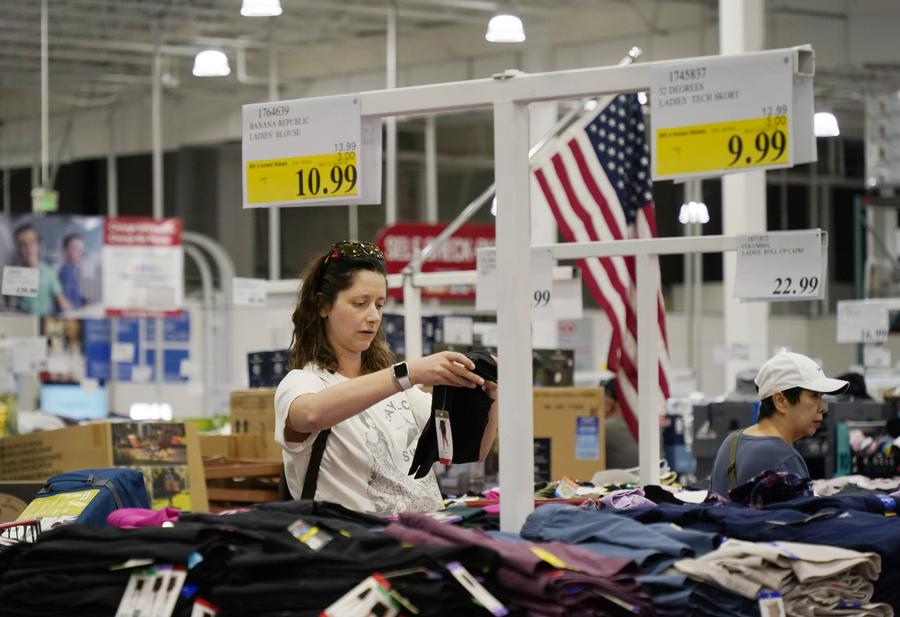Customers select goods at a supermarket in Foster City, California, the United States, May 15, 2024. (Photo by Li Jianguo/Xinhua)