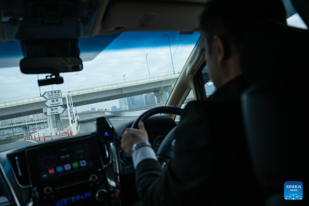 Wong Chi Choi, a young man from Macao, drives a Macao single-plate car to Hengqin of Zhuhai city, south China's Guangdong Province, Dec. 11, 2024. (Xinhua/Cheong Kam Ka)