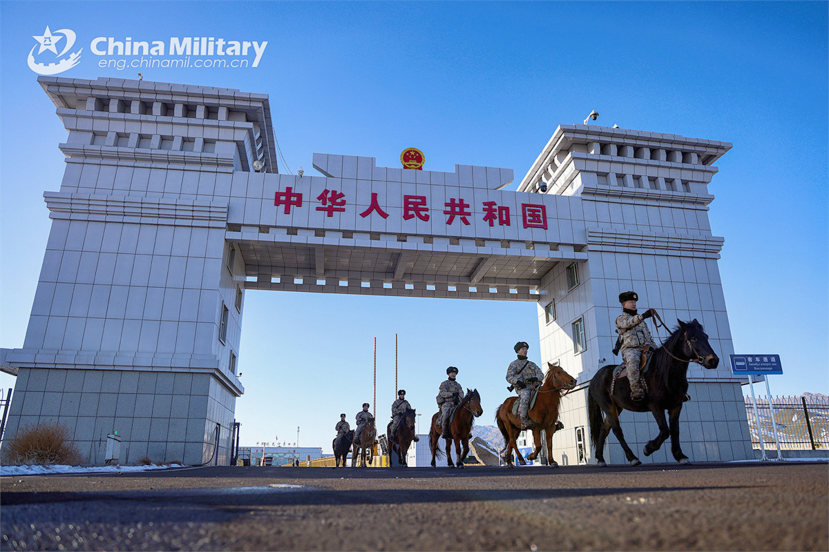 Soldiers assigned to the Takixken border defense company under the Chinese PLA Xinjiang Military Command pass through the Takixken road port during a routine patrol mission on November 29, 2024. (eng.chinamil.com.cn/Photo by Xiao Guotao)