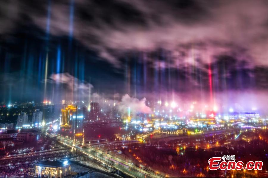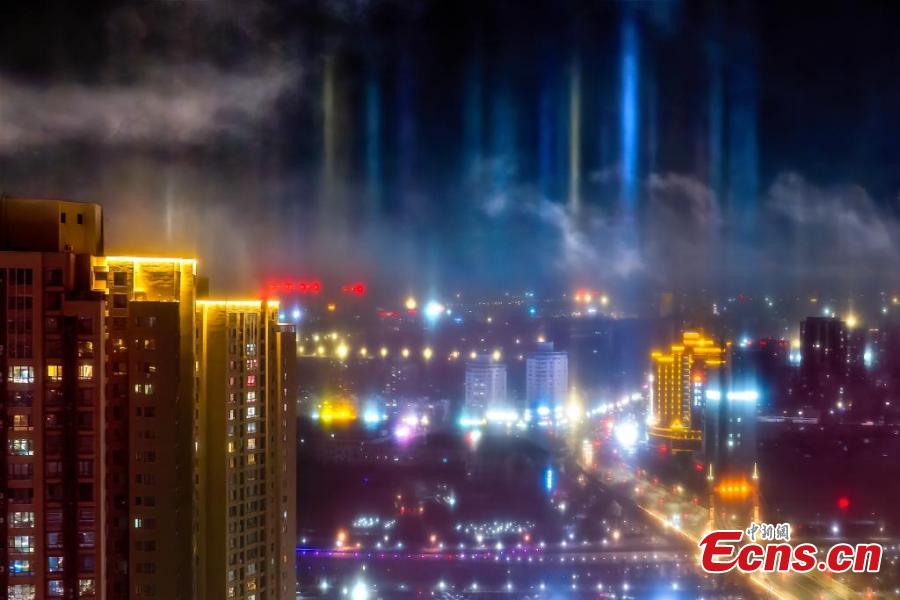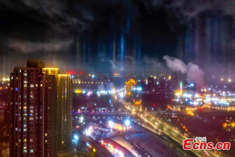 Stunning light pillars light up sky in Xinjiang