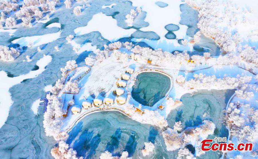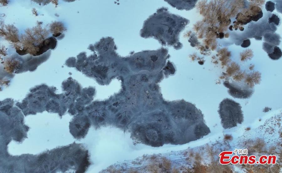 Snow turns sand dunes into a winter wonderland in the Huludao Scenic Area, the Bayingolin Mongolian Autonomous Prefecture, northwest China's Xinjiang Uygur Autonomous Region. (China News Service/Yu Zhipeng)