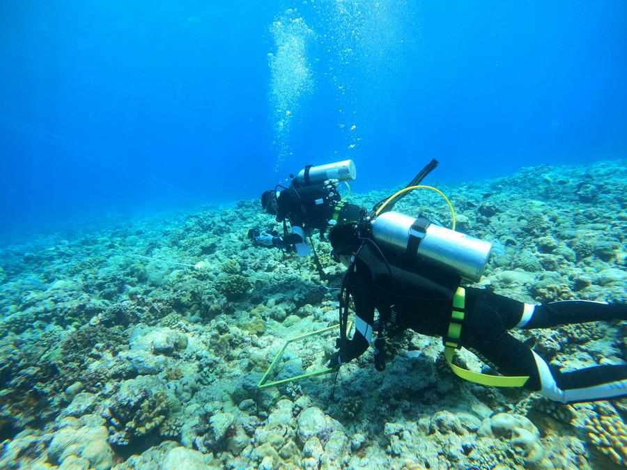 This photo carried in a report titled "The Investigation and Assessment Report on Marine Ecology and Environment Status of Huangyan Dao" shows researchers conducting on-site investigation in Huangyan Dao in 2024. (Xinhua)