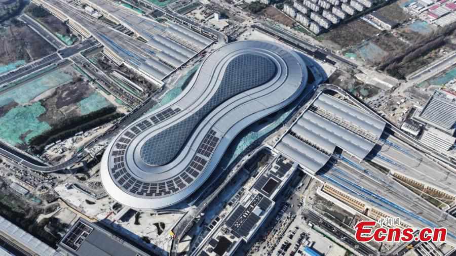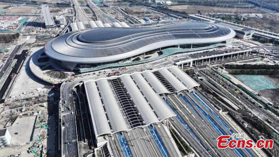 Aerial view of Shanghai Songjiang Railway Station, Dec. 16, 2024. (China News Service/Yin Liqin)