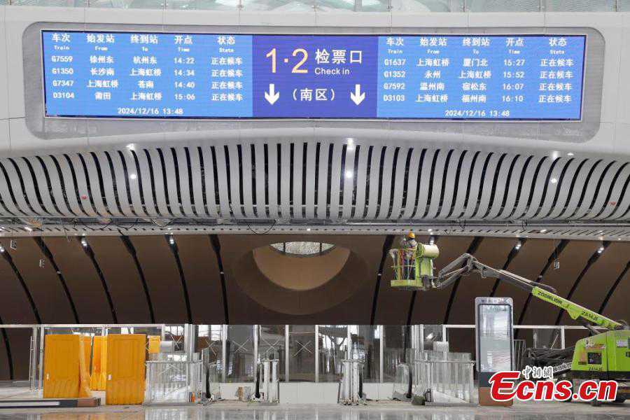An interior view of Shanghai Songjiang Railway Station, Dec. 16, 2024. (China News Service/Yin Liqin)