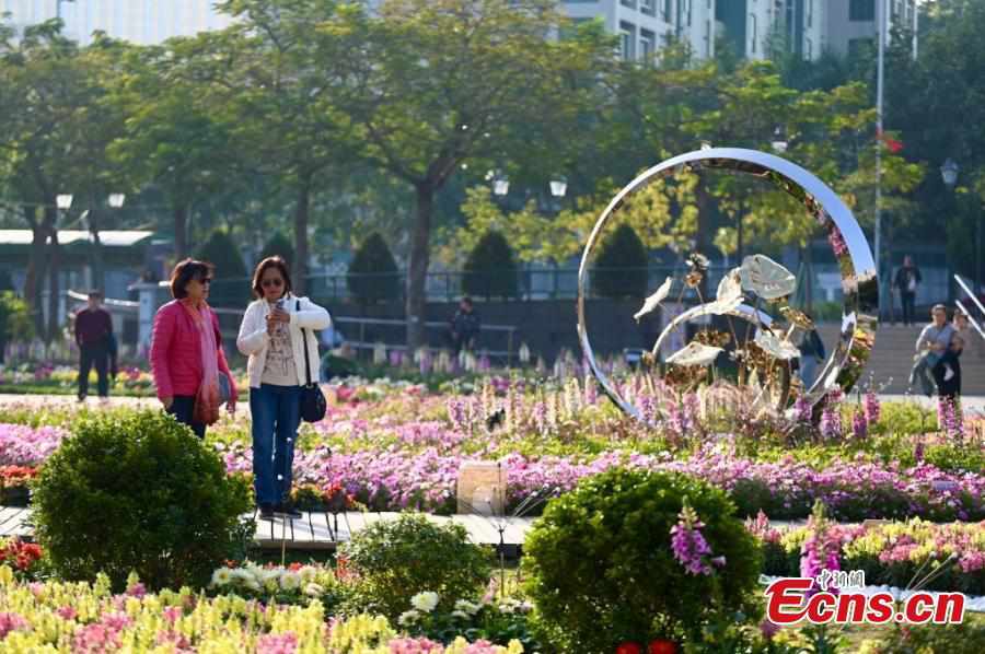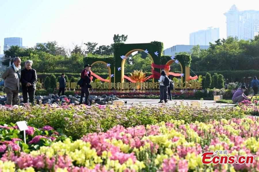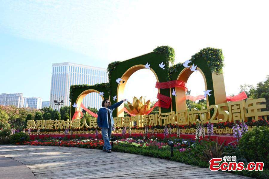 People visit a flower show celebrating the 25th anniversary of Macao's return to the motherland, on Taipa Island in the Macao Special Administrative Region, Dec. 17, 2024. (China News Service/Li Zhihua)
