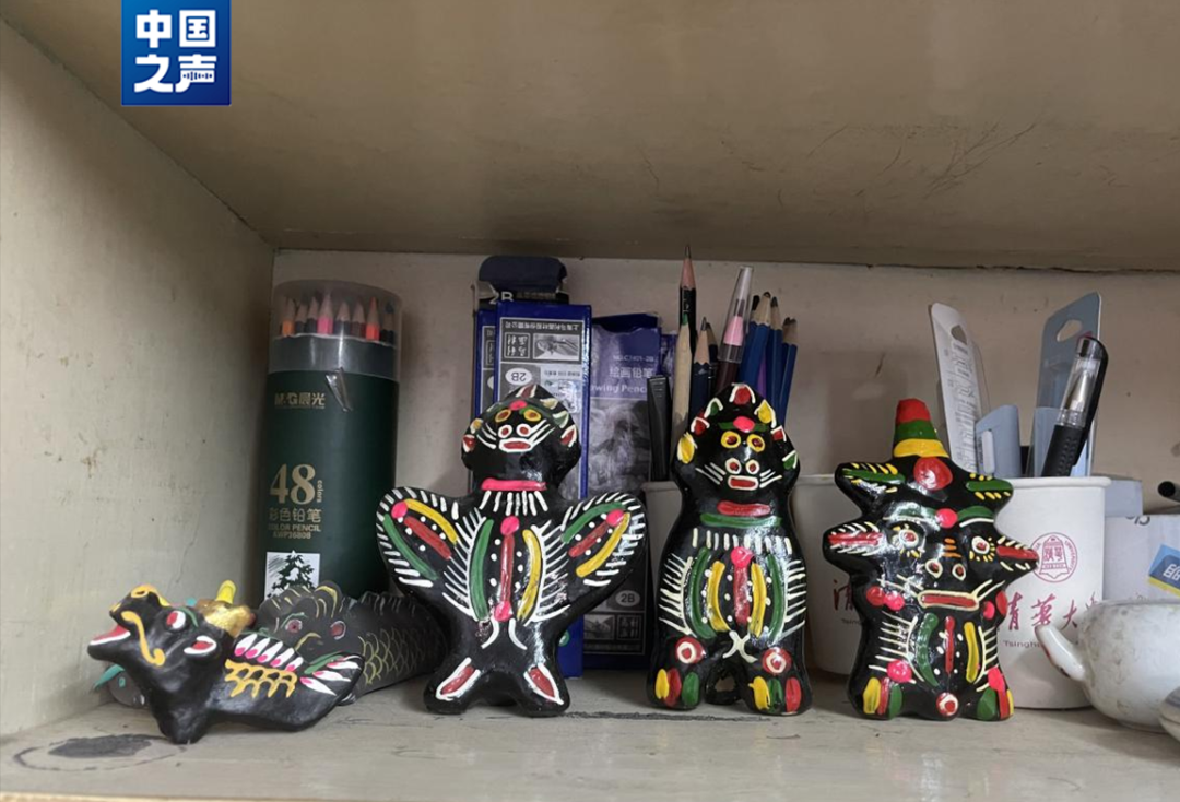 Photo shows clay dogs on Liu Tao's bookshelf. (Photo/china.cnr.cn)