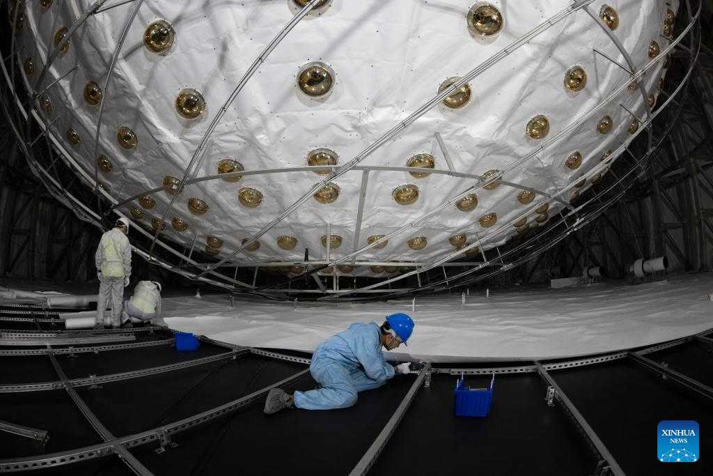 GUANGZHOU, Dec. 18 (Xinhua) -- The world's largest transparent spherical detector started filling with ultrapure water Wednesday, signifying that the construction of the neutrino research facility has reached its last critical stage.