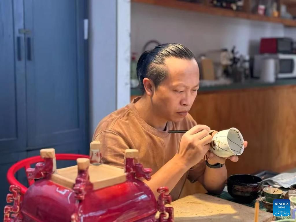 This undated photo shows a sojourner restoring porcelain at a workshop in Zhonghe Village of Dali City, Dali Bai Autonomous Prefecture, southwest China's Yunnan Province. (Xinhua)