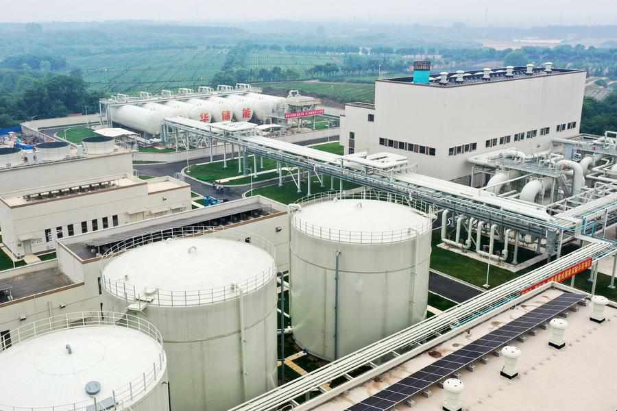 Aerial photo taken on May 26, 2022 shows a salt cavern compressed air energy storage facility in Changzhou City, east China's Jiangsu Province. (Photo by Hu Ping/Xinhua)