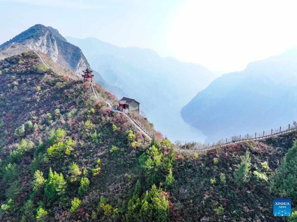 Tourists enjoy the scenery at a scenic spot near Wuxia Gorge, one of the Three Gorges on the Yangtze River, in Wushan County, southwest China's Chongqing, Dec. 18, 2024.