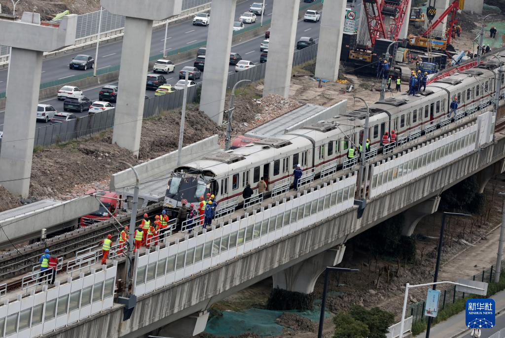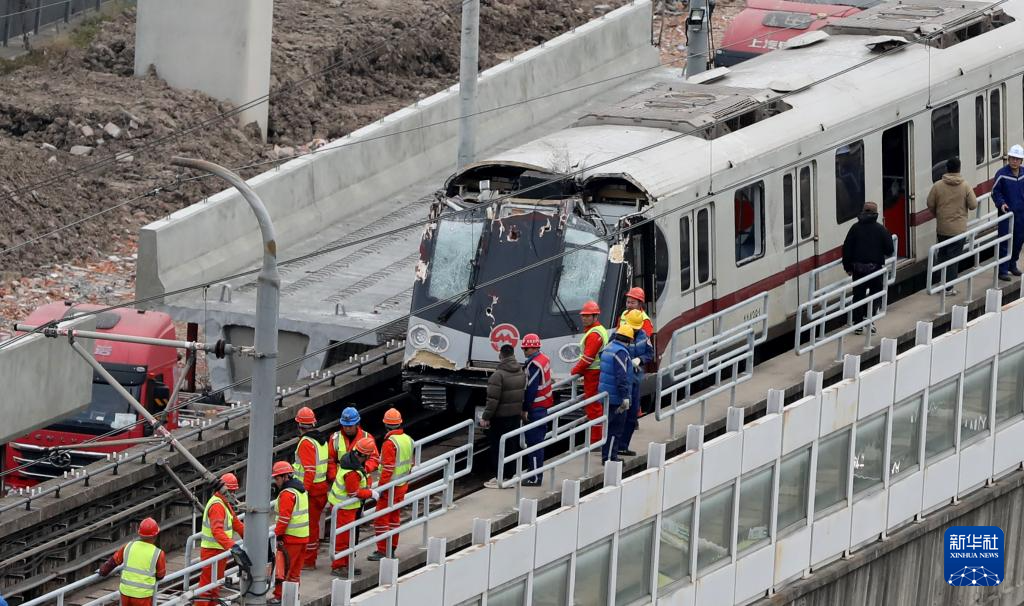 The incident occurred on an aboveground section of the line between Malu and Wuwei Road stations at around 8 am. Shanghai Metro said that a construction project involving the tower crane had invaded the metro line, which caused damage to the train and other metro facilities.