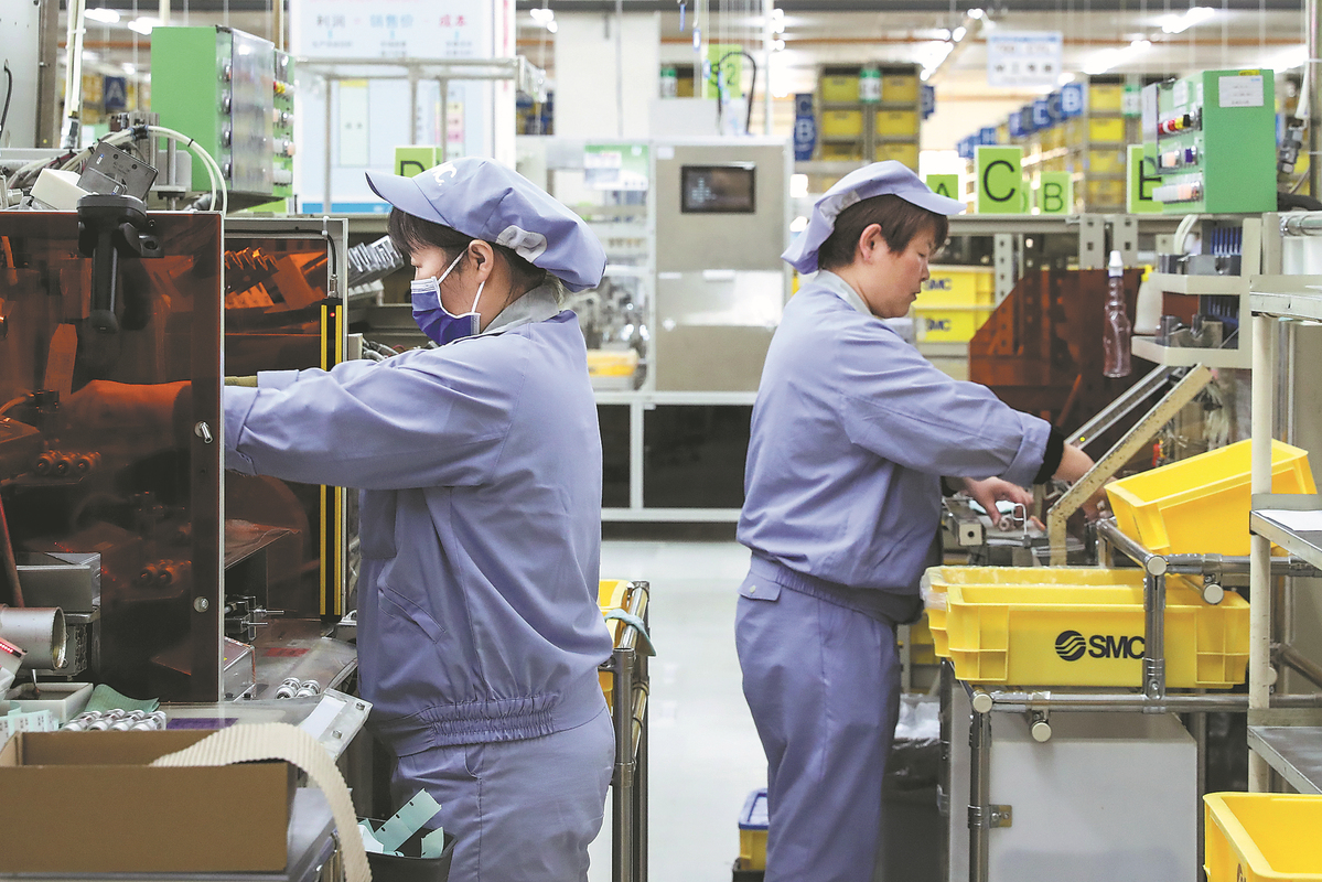 Employees work on the production line of a foreign-funded enterprise in Beijing. (Photo/Xinhua)