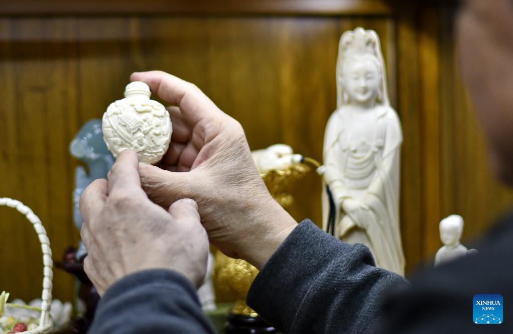 Pic story of intangible cultural heritage inheritor of ivory carving in Beijing