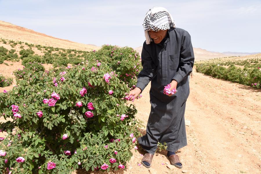 Muhammad Jamal Abbas, a Damask Rose farmer, picks roses in the town of al-Marah in the northern countryside of Damascus, Syria, May 28, 2024. (Photo by Monsef Memari/Xinhua)