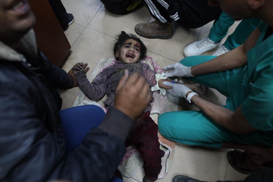 An injured girl is treated at a hospital in central Gaza Strip city of Deir el-Balah, March 8, 2024. (Xinhua)