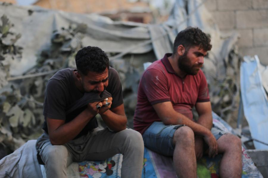 People mourn victims after Israeli bombardment in the Al-Zawaida area in the central Gaza Strip, Aug. 17, 2024. (Photo by Marwan Dawood/Xinhua)
