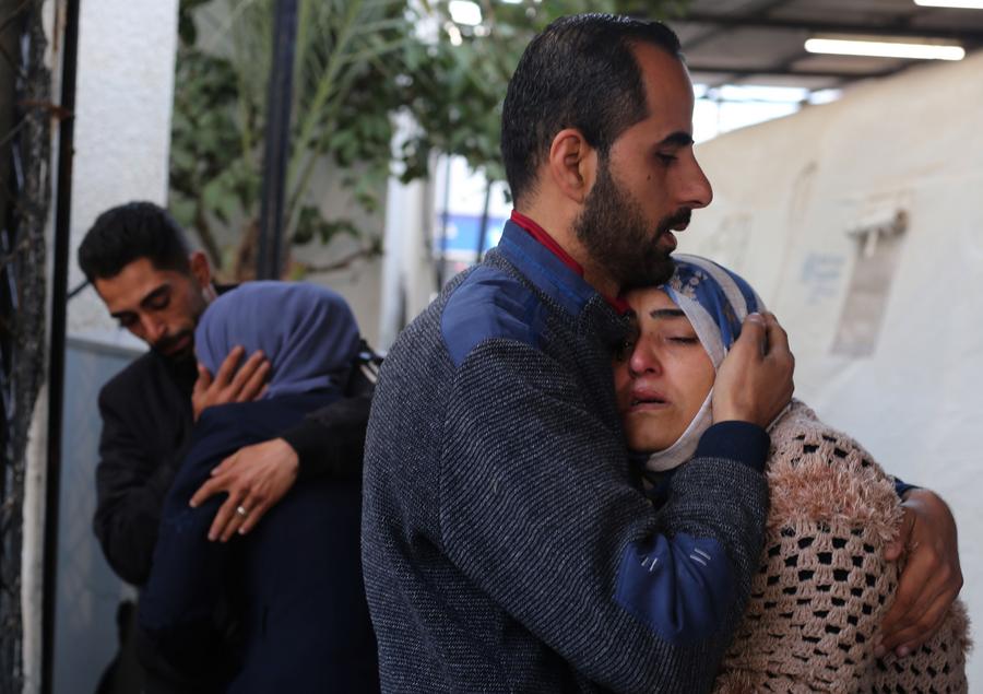 People mourn victims after an Israeli airstrike in the southern Gaza Strip city of Rafah, Jan. 5, 2024. (Photo by Khaled Omar/Xinhua)