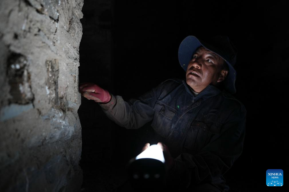 Tashi, a craftsman from the maintenance unit of the Potala Palace's management office, performs a routine checkup at the palace in Lhasa, southwest China's Xizang Autonomous Region, Dec. 4, 2024. (Xinhua/Jigme Dorje)