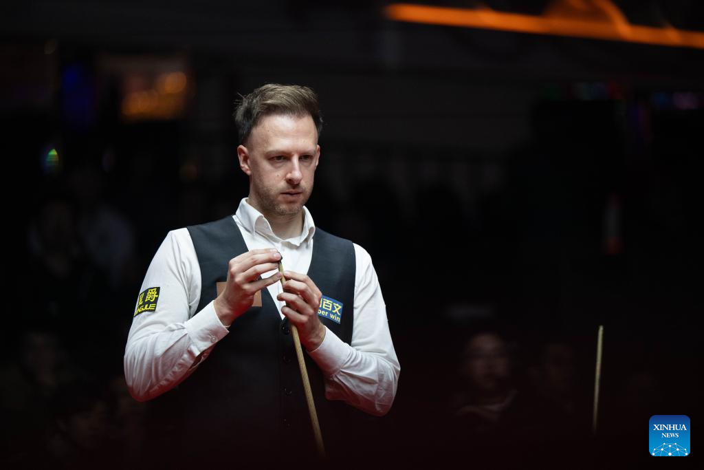 Judd Trump of England competes during the match against Ding Junhui of China at 2024 Macao Snooker Masters in south China's Macao, Dec. 25, 2024. (Xinhua/Cheong Kam Ka)