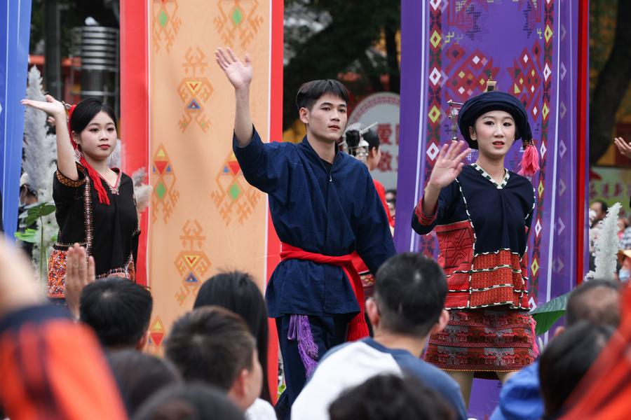WUZHISHAN, Dec. 30 (Xinhua) -- An ethnic fashion show is held in Wuzhishan of south China's Hainan Province Sunday. The show, integrating the traditional costumes of Li and Miao ethnic groups with modern fashion elements, is aimed at displaying the speical charm of culture in Wuzhishan area and the achievement of local rural revitalization.