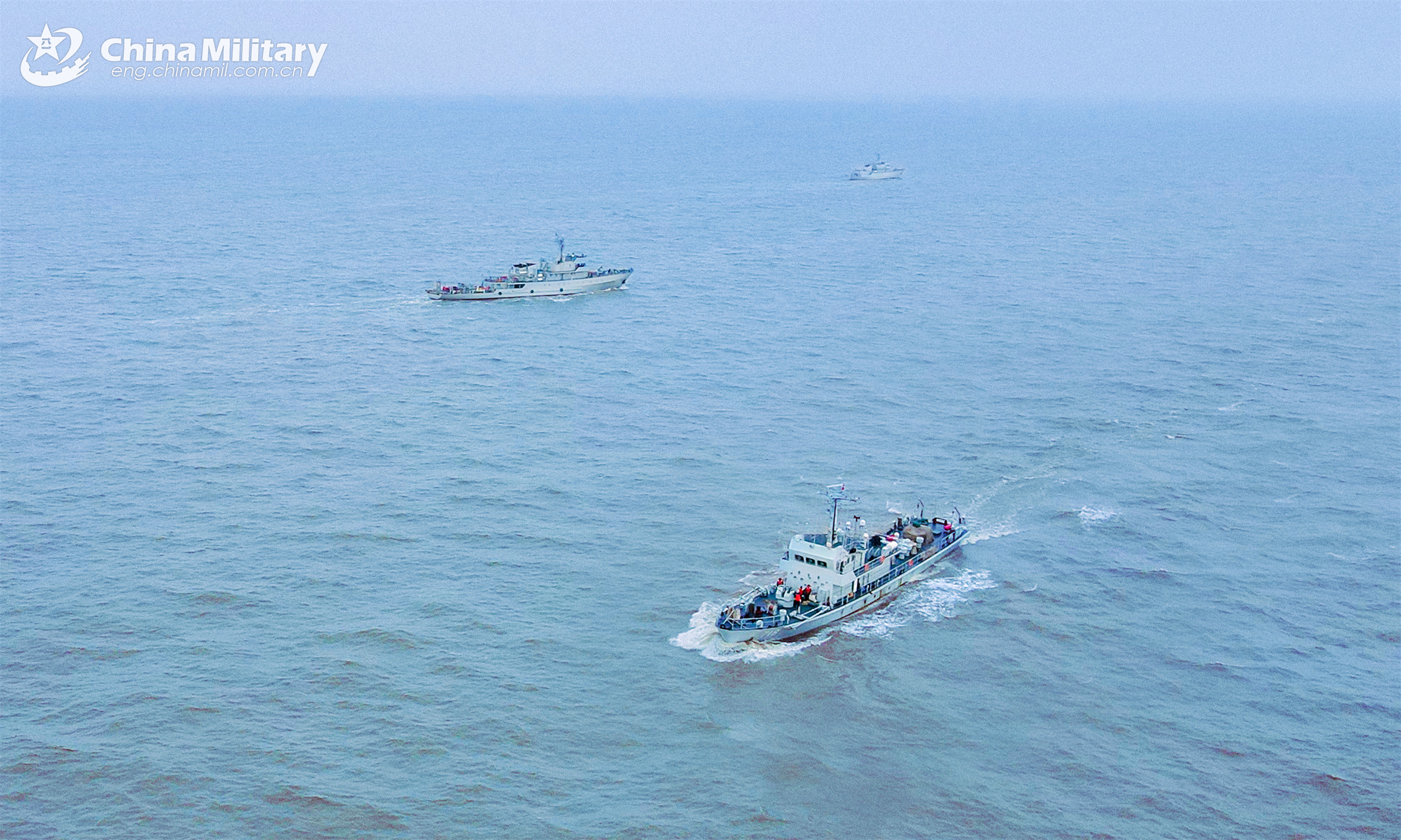 Minesweeper Rudong (Hull 712) attached to a naval group under the Chinese PLA Navy sails in tandem with a minehunter during a maritime training exercise in late November 2024. (eng.chinamil.com.cn/Photo by Zhang Yi)