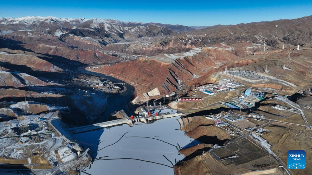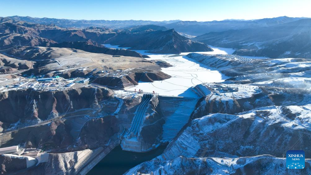 An aerial drone photo taken on Dec. 31, 2024 shows a view of the Maerdang Hydropower Station in Hainan Tibetan Autonomous Prefecture in northwest China's Qinghai Province.