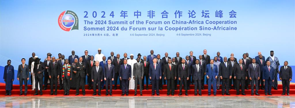 Chinese President Xi Jinping and foreign leaders gather for group photos prior to the opening ceremony of the 2024 Summit of the Forum on China-Africa Cooperation (FOCAC) at the Great Hall of the People in Beijing, capital of China, Sept. 5, 2024. Xi attended the opening ceremony of the 2024 Summit of the FOCAC and delivered a keynote speech. (Xinhua/Rao Aimin)