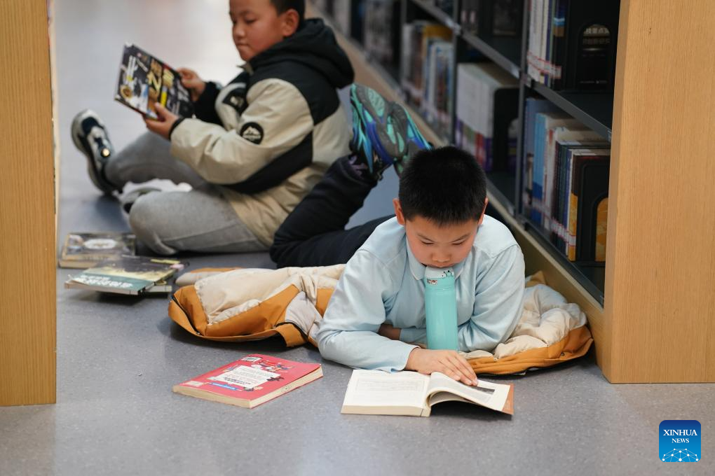 Children read at a library in Xi'an, northwest China's Shaanxi Province, Jan. 1, 2025. People across China enjoy themselves in various activities, celebrating the first day of 2025. (Xinhua/Shao Rui)