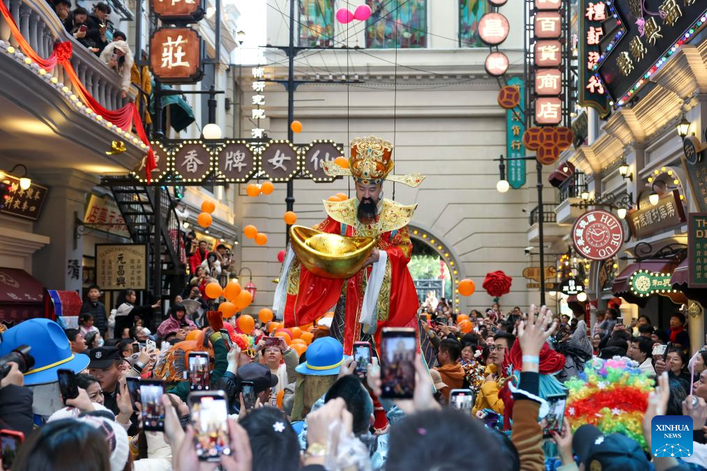People watch a New Year parade in east China's Shanghai, Jan. 1, 2025. People across China enjoy themselves in various activities, celebrating the first day of 2025. (Xinhua/Wang Xiang)