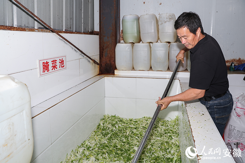 A worker pickles vegetables in Digang township, Fanchang district, Wuhu city, east China's Anhui Province. (People's Daily Online/Zhang Jun)