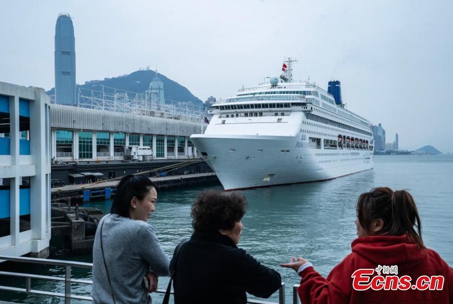 Piano Land (or Gulangyu Island), a luxury cruise ship docks at Harbour City Pier, Tsim Sha Tsui, the Hong Kong Special Administrative Region, Jan. 1, 2025. (China News Service/Hou Yu)