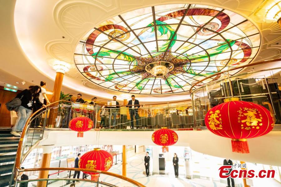 An interior view of the Piano Land (or Gulangyu Island), a luxury cruise ship at Harbour City Pier, Tsim Sha Tsui, the Hong Kong Special Administrative Region, Jan. 1, 2025. (China News Service/Hou Yu)