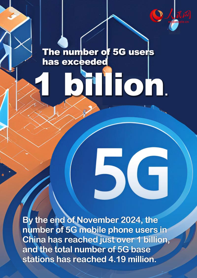 The number of 5G users has exceeded 1 billion. The number of 5G base stations has surpassed 4 million.