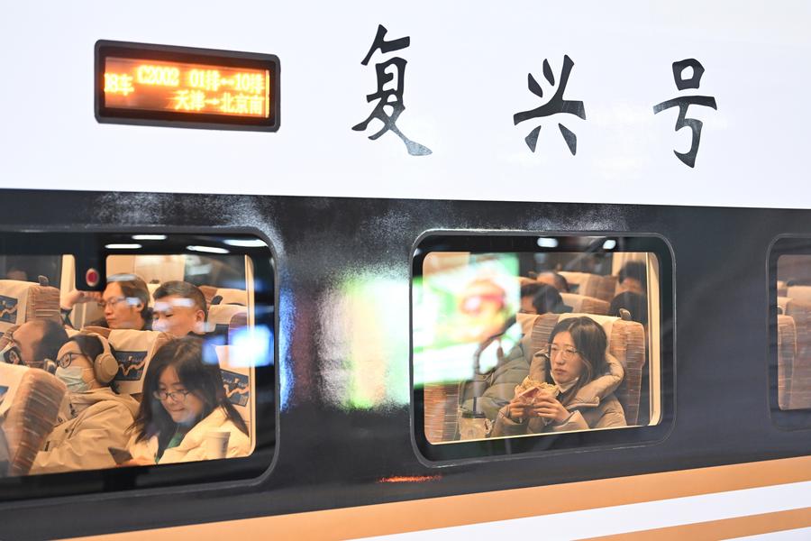 Passengers wait on a bullet train bound for Beijing at Tianjin Railway Station in north China's Tianjin, Dec. 10, 2024. (Xinhua/Li Ran)