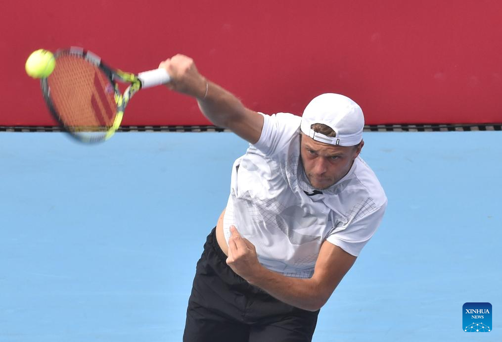 Alexandre Muller serves during the semifinal between Jaume Munar of Spain and Alexandre Muller of France at the ATP250 Hong Kong Tennis Open in Hong Kong, south China, Jan. 4, 2025. (Photo by Lo Ping Fai/Xinhua)