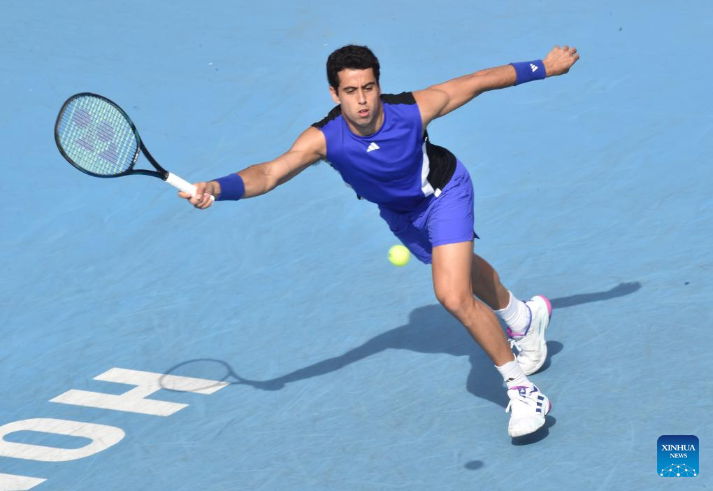 Jaume Munar hits a return during the semifinal between Jaume Munar of Spain and Alexandre Muller of France at the ATP250 Hong Kong Tennis Open in Hong Kong, south China, Jan. 4, 2025. (Photo by Lo Ping Fai/Xinhua)