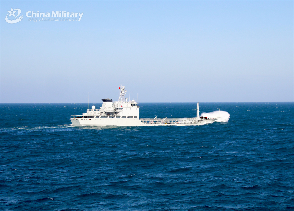 NANSHUI 978 water tanker attached to a naval service ship group of the Chinese PLA Southern Theater Command sails at sea during a replenishment-at-sea training exercise on December 4, 2024. (eng.chinamil.com.cn/Photo by Wu Huanqing)