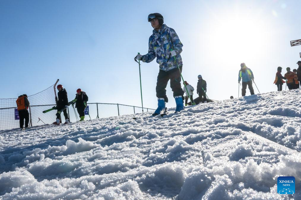 Tourists ski at Bailihuang Ski Resort in Yichang City, central China's Hubei Province, Jan. 5, 2025. In recent years, Yichang has explored its ice and snow tourism resources, attracting numerous tourists. (Xinhua/Xiao Yijiu)