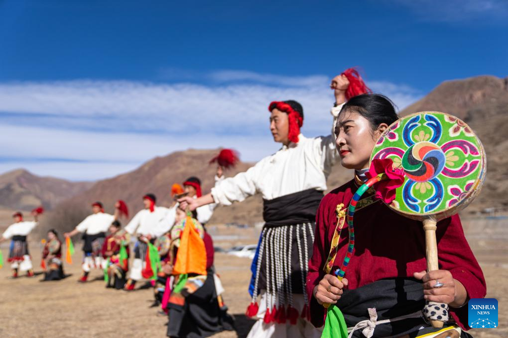 People perform Reba Dance in Chido Township, Dengqen County, Qamdo, southwest China's Xizang Autonomous Region, Jan. 5, 2025. (Xinhua/Tenzin Nyida)
