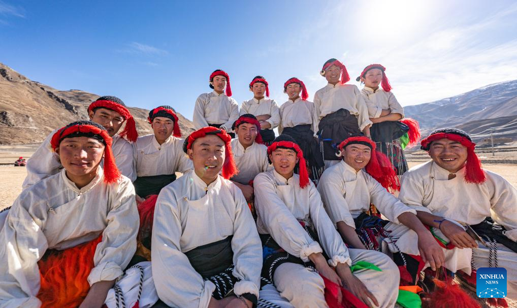 Members of a Reba Dance performing team pose for a photo in Chido Township, Dengqen County, Qamdo, southwest China's Xizang Autonomous Region, Jan. 5, 2025. (Xinhua/Tenzin Nyida)