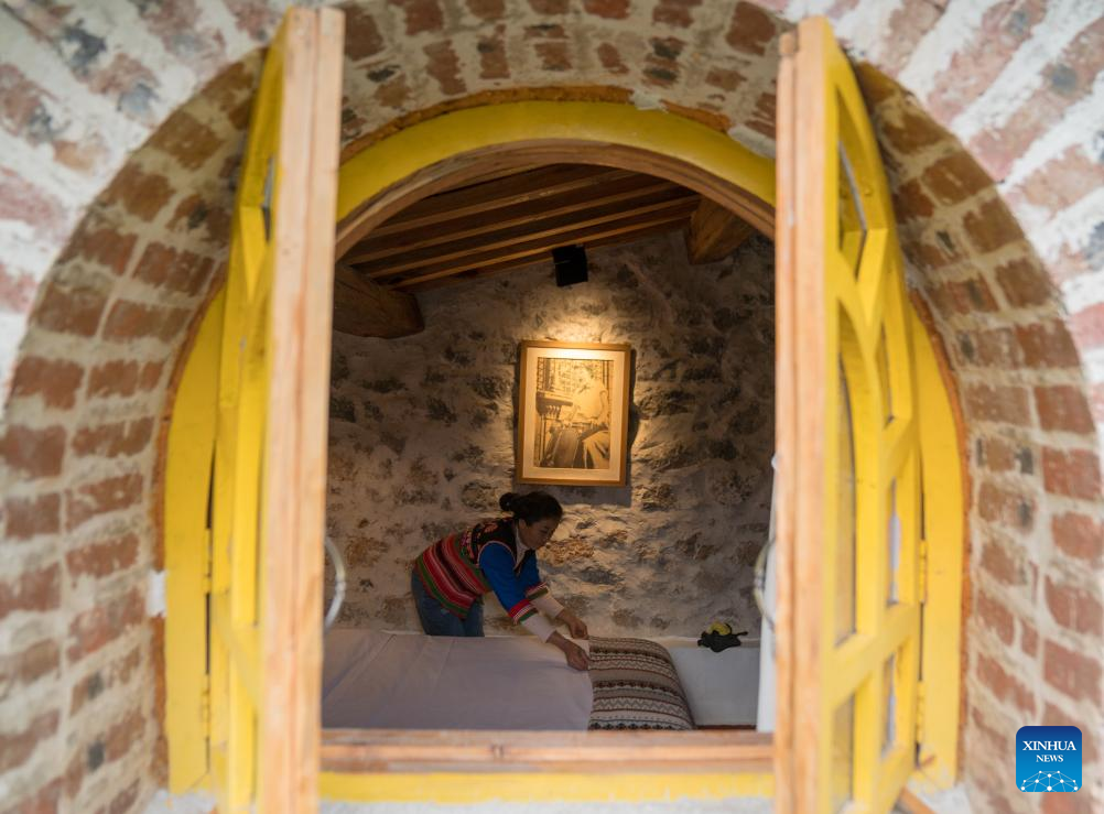 A staff member tidies up a guestroom at a homestay in Jinuoshan Town in Jinghong City of Xishuangbanna Dai Autonomous Prefecture, southwest China's Yunnan Province, Jan. 5, 2025. Jinuo ethnic group is one of the ethnic minorities in China, with the majority residing in Jinghong City. In recent years, local authorities have made efforts to develop tourism by taking advantage of the rainforest resources and ethnic cultures, effectively increasing the income of local residents. (Xinhua/Peng Yikai)